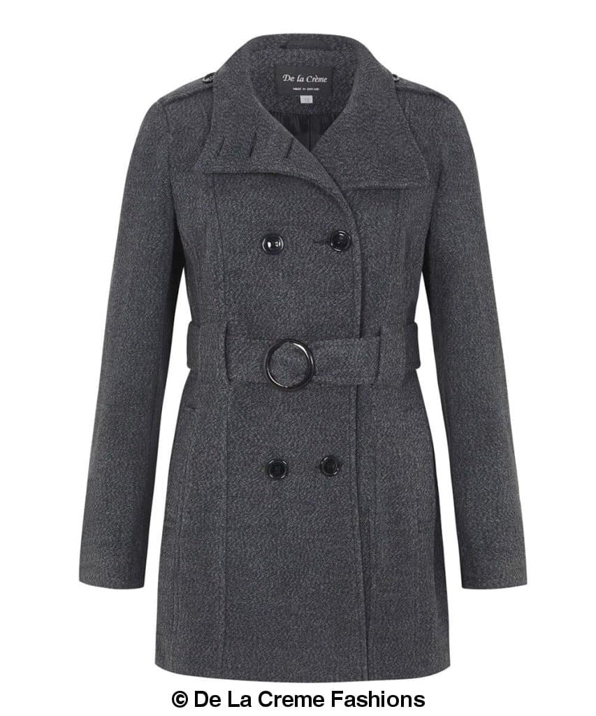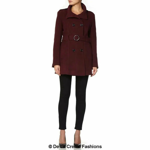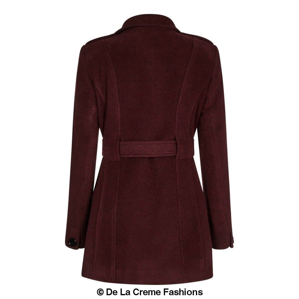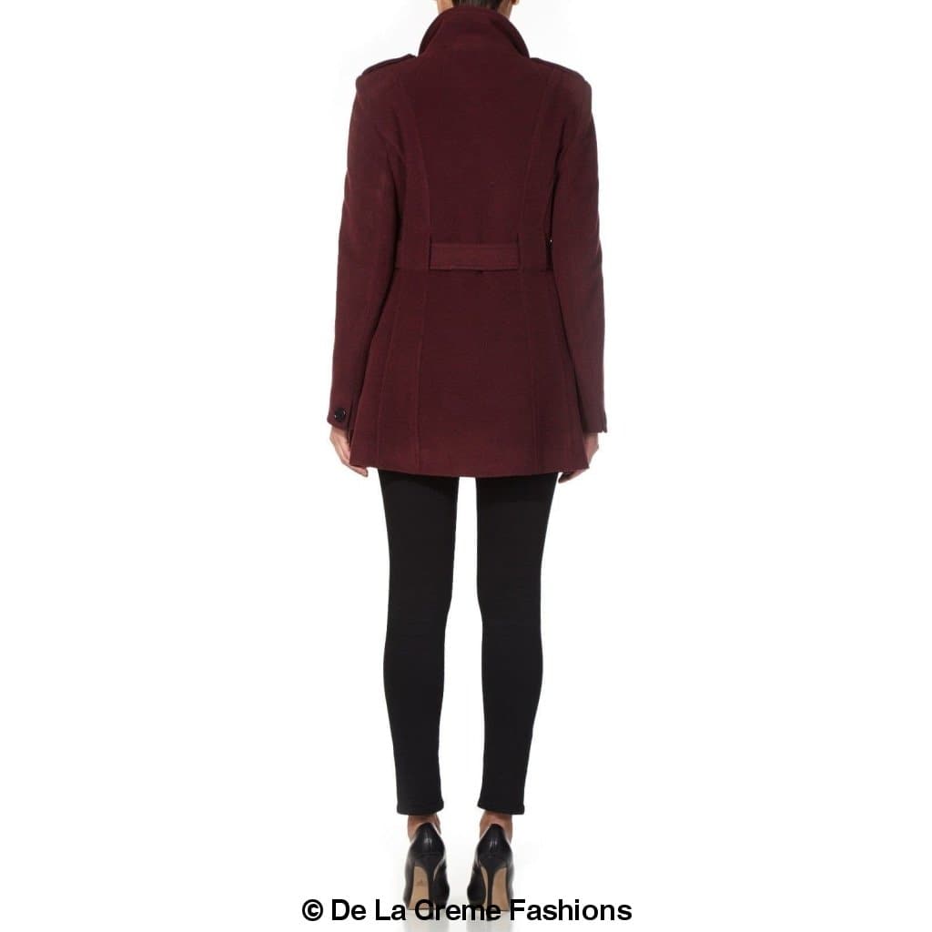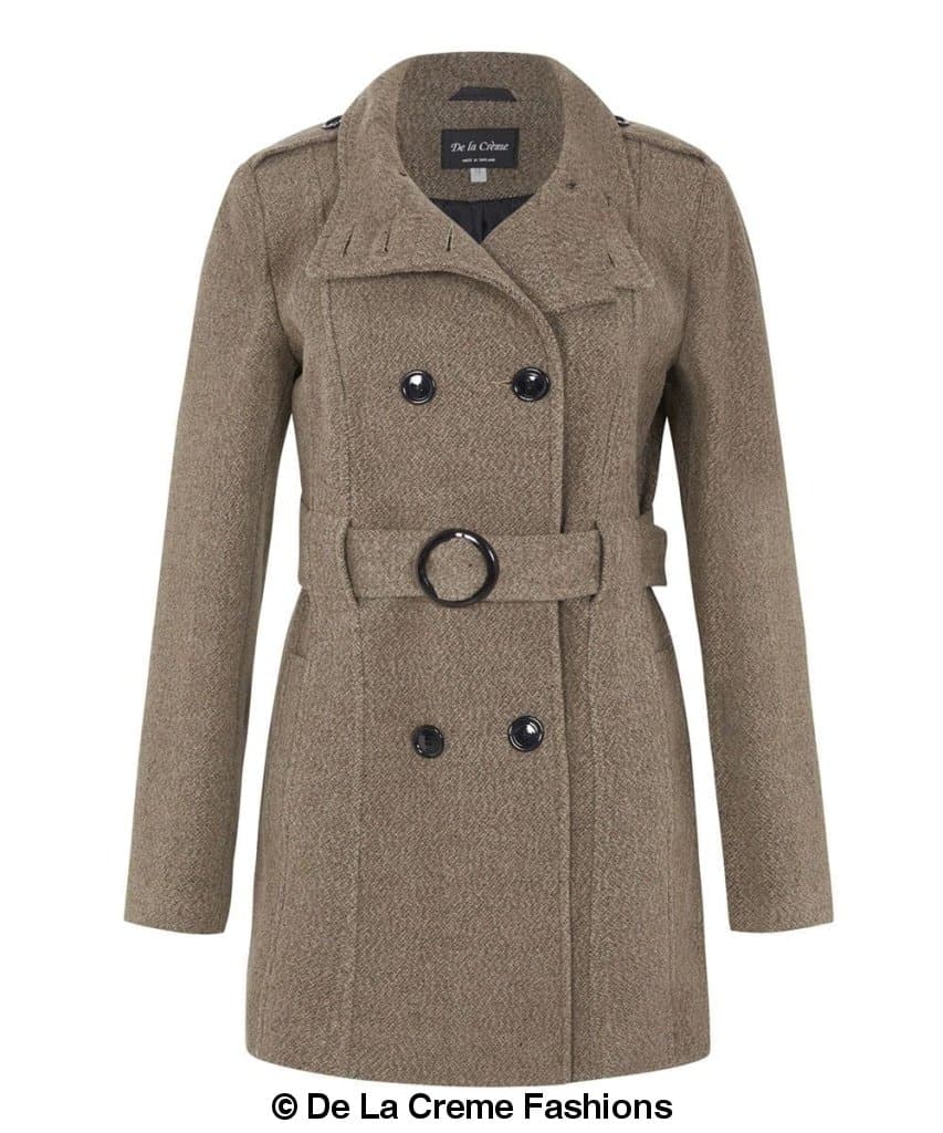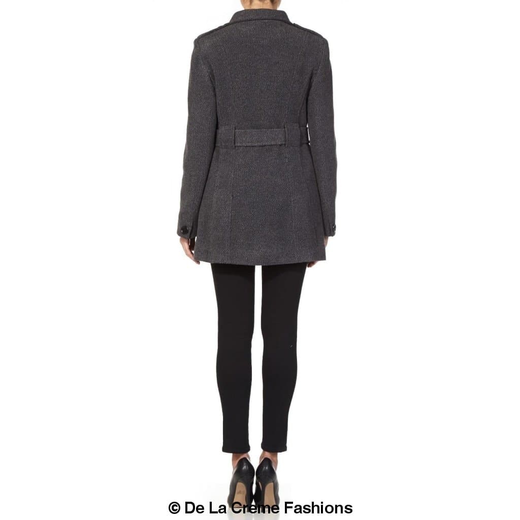 Women's Herringbone Wool Blend Military Style Belted Coat
