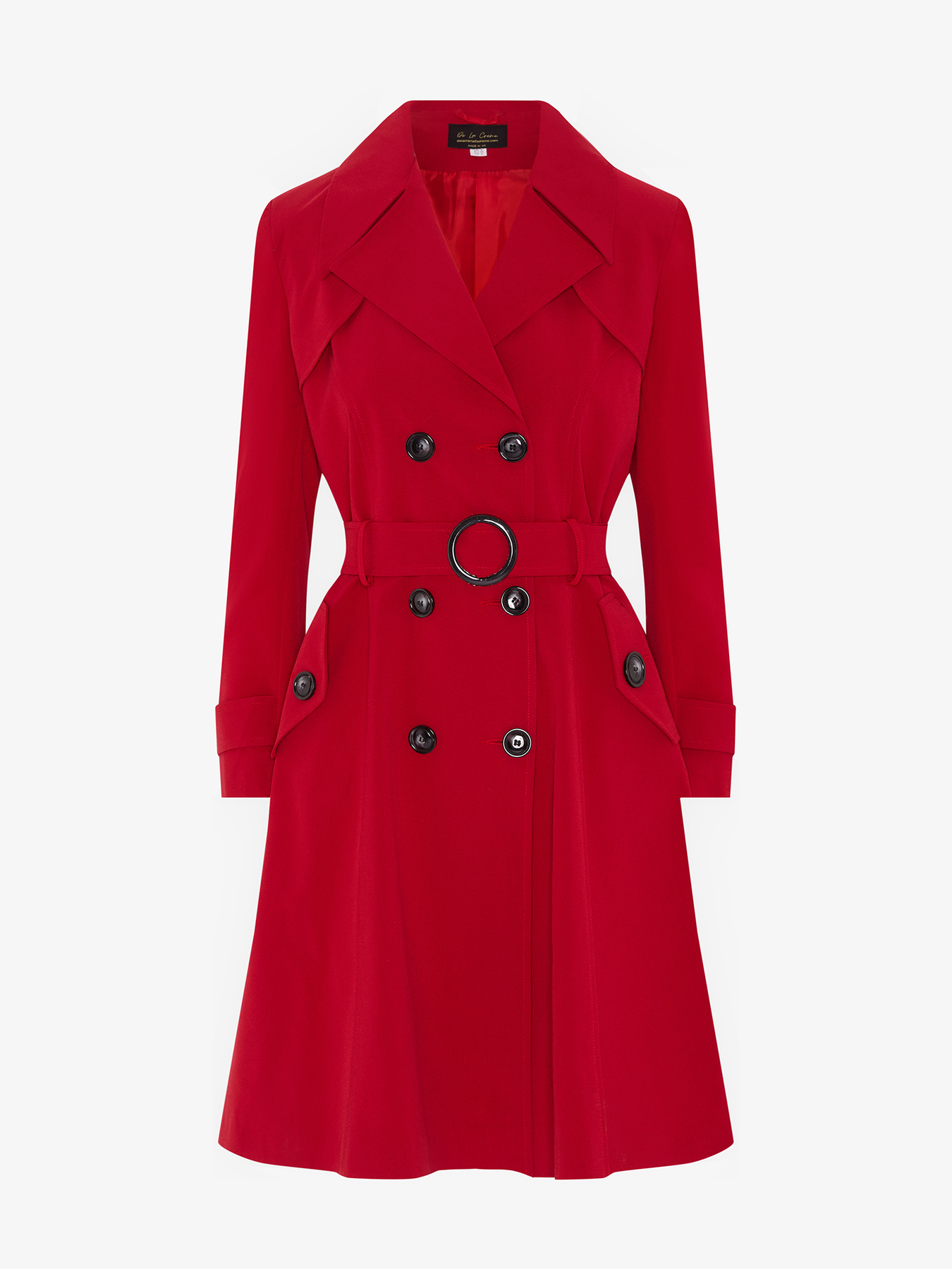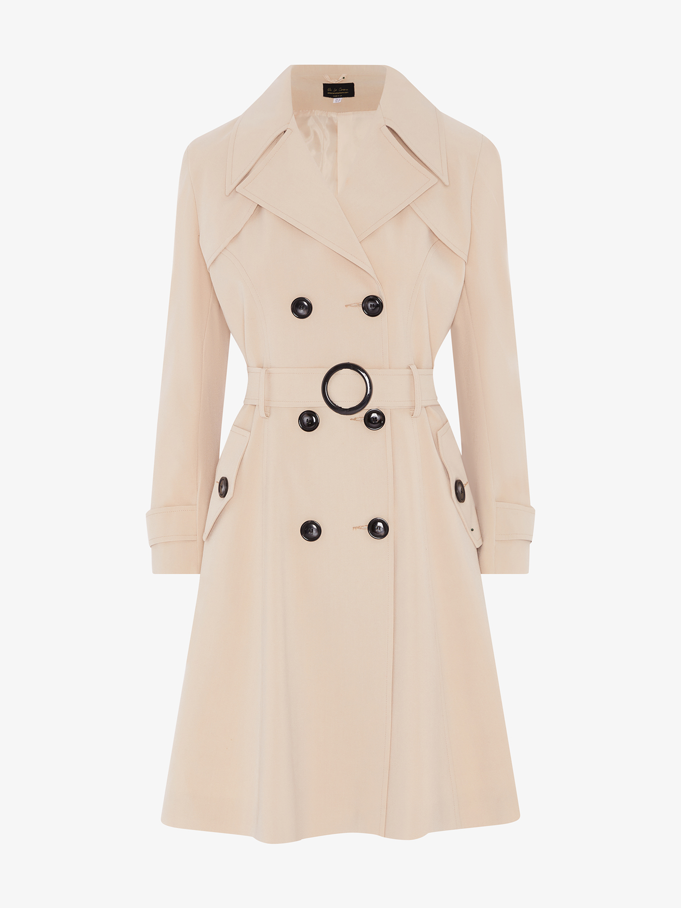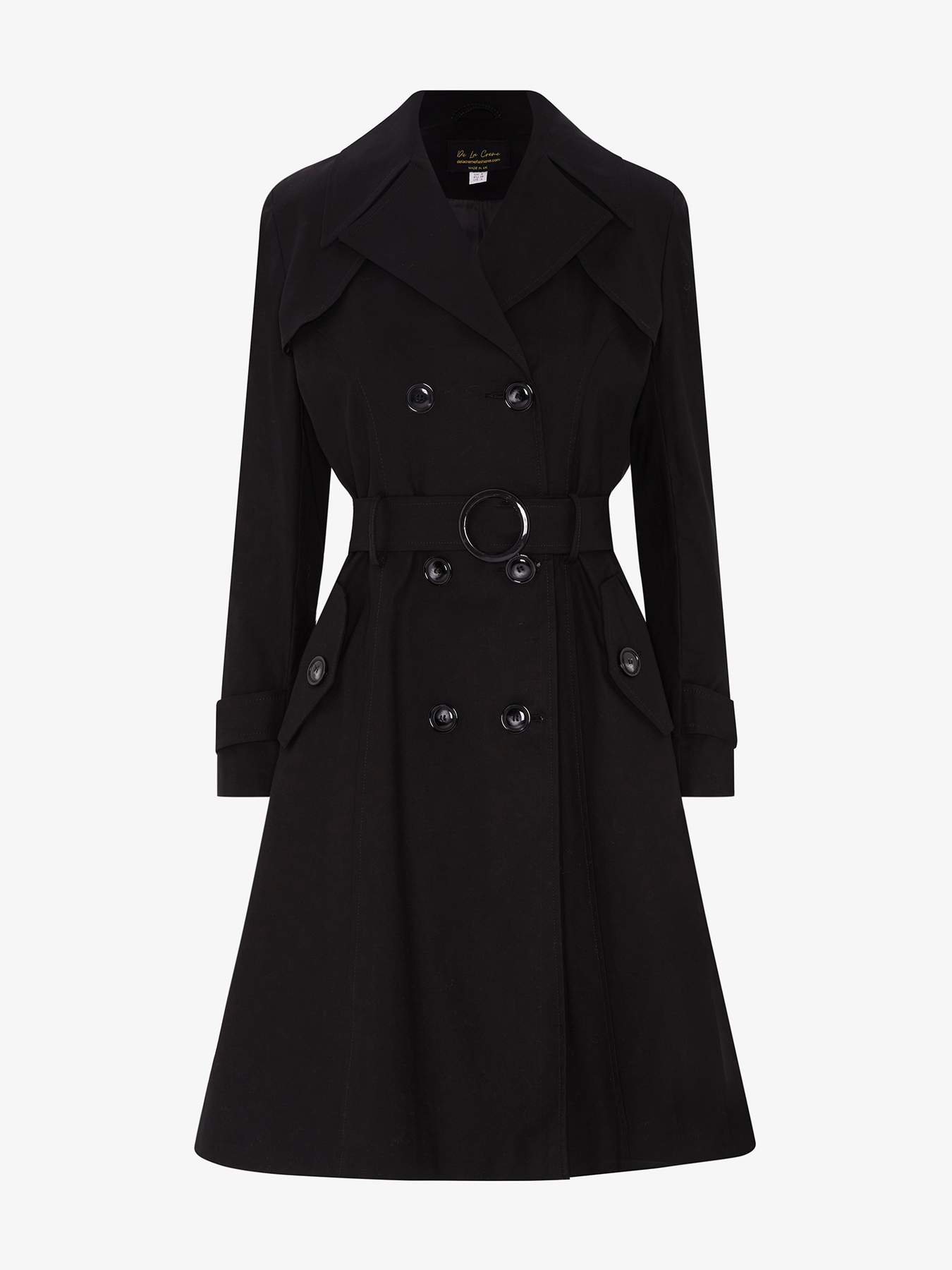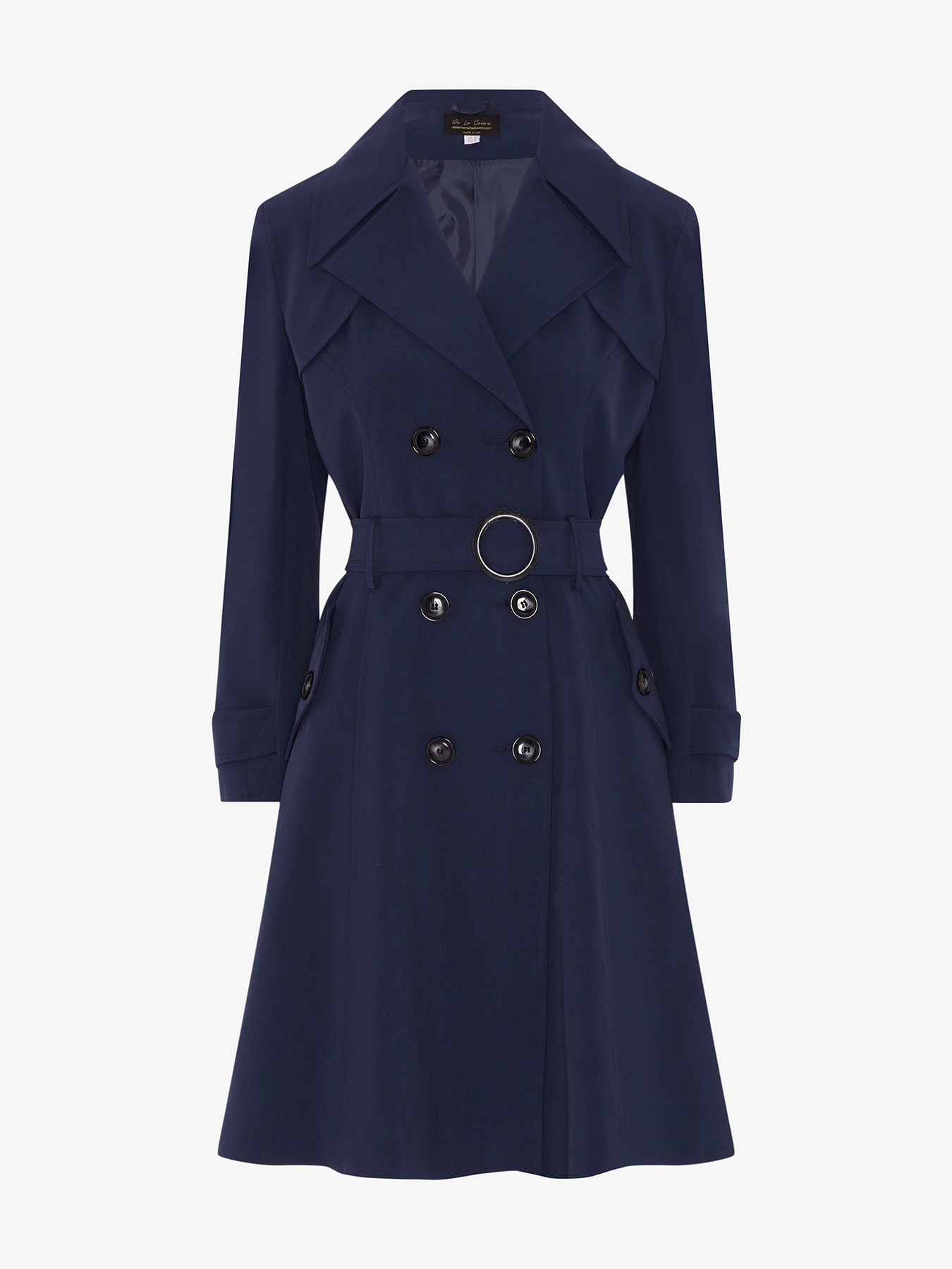 The De La Creme trench coat is the perfect way to update your wardrobe for spring. This beautiful piece is made from high-quality materials and is fully lined inside. The double-breasted fastening and waist belt make it a flattering and stylish option for any woman. The 2 side pockets are a practical addition, making this the perfect coat for everyday wear. Made in England, this piece is sure to become a staple in your wardrobe for years to come.